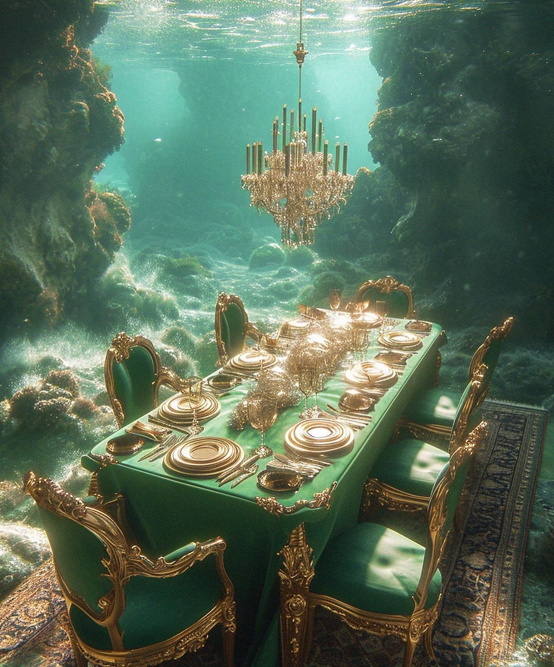 Atlantean Royalty: A bit more mythical — crowns, flowing fabrics, underwater textures.